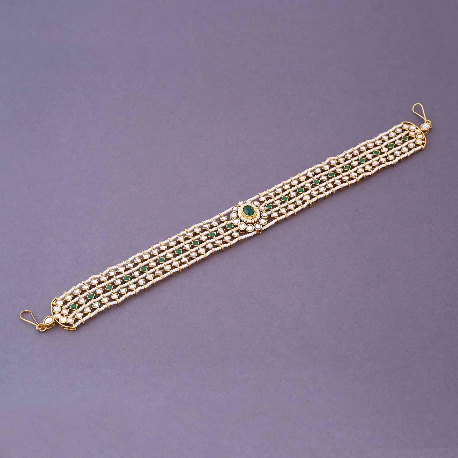 The set includes a stunning necklaces, matching earrings, and a beautiful maang tikka, all meticulously crafted with high-quality Kundan stones and lustrous pearls. The gold-plated finish adds a touch of elegance, making it a perfect complement to any bridal ensemble. With proper care, this jewelry will remain a cherished keepsake for years to come