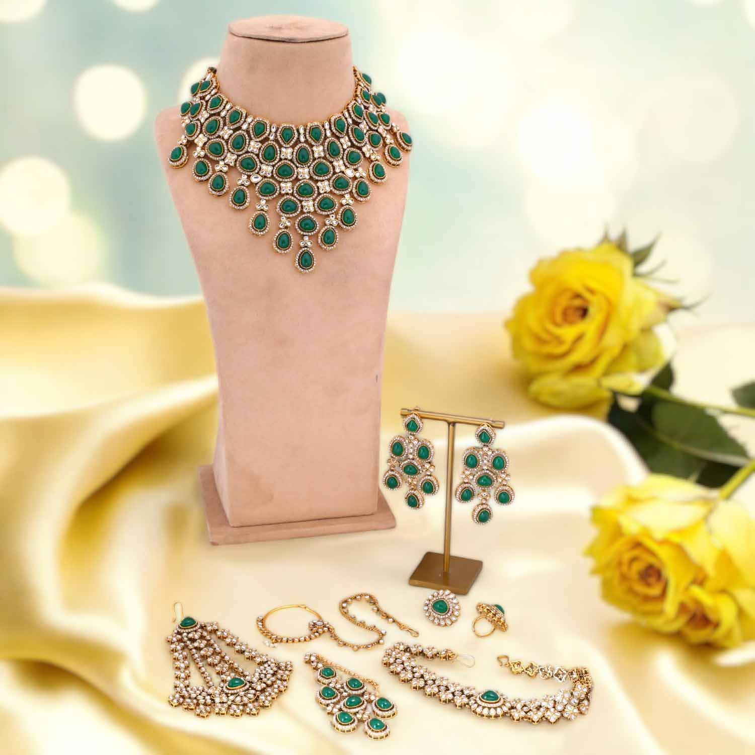 - Unit: Necklace, One Pair Of Earrings, One Maang Tikka, One Matha Patti, Rings, One Passa and a Nath.
