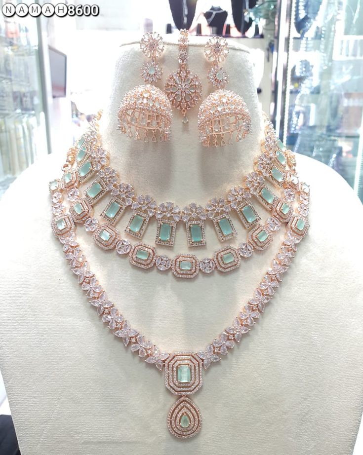 These Naari Zhankar Look Necklace Sets offer a stunning and elegant addition to any outfit. Made with high-quality materials, they provide a classic and timeless touch to your style. The set comes with a necklace and matching earrings, perfect for special occasions or everyday wear. Elevate your look with these beautiful necklace sets.