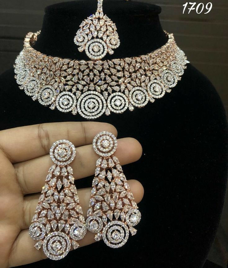 Discover the timeless beauty of the Nagina Look Diamond Set for You. Expertly crafted with sparkling diamonds, this set is a stunning addition to any outfit. Make a statement of elegance and sophistication with this must-have accessory. Elevate your style with the Nagina Look Diamond Set for You.